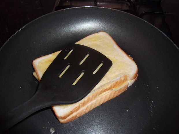 Mantener el bikini los bancos sobre cada 15 segundos o así que presionando hacia abajo con la espátula después de cada vez has volteado a hacerla más similares a sándwich.