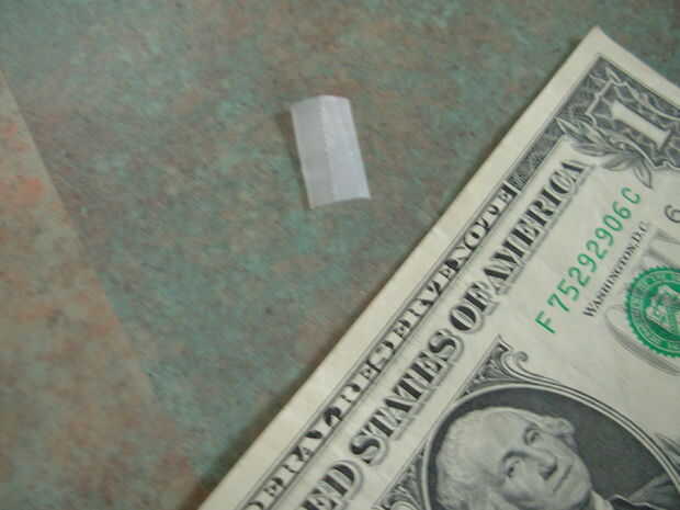 Listo! Ahora ir y engañar a algunas personas. Si lo desea, puede poner alguna cinta en el suelo para sostener ligeramente la factura así no alboroto lejos de la brisa. Asegúrese de ejercitar reflejos rápidos si se trata de un $20, $50, $100 o más. Si lo desea, podría conectar uno de los titulares de ID de conserje (poca cosa con clip con resorte de la herida sedal dentro) para ubicaciones de tiro rápido. Por cierto, yo no soy responsable por cualquier perdida o robo dinero!