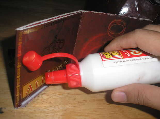 usando el pegamento pegan dos piezas de la parte inferior. usé pinzas para mantener juntos