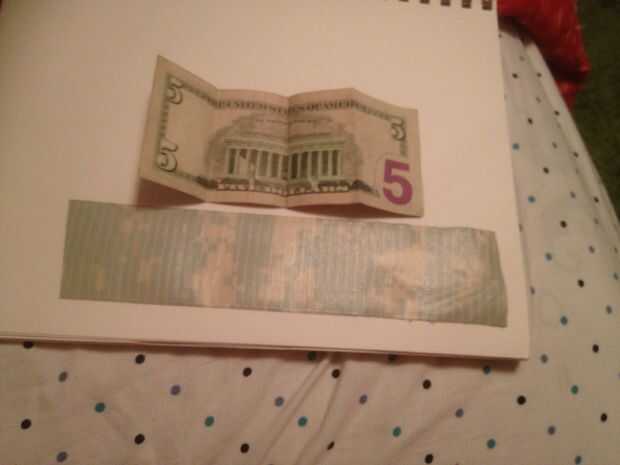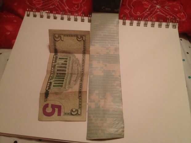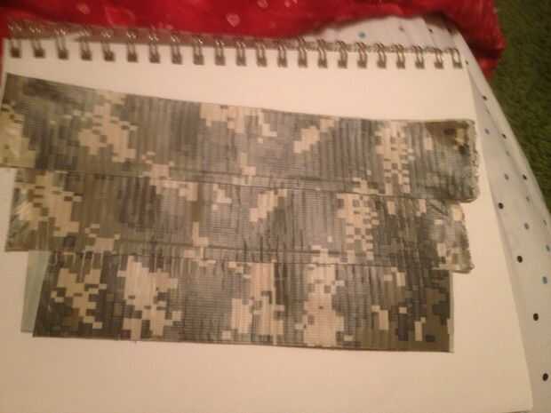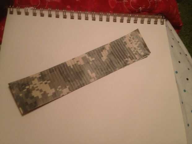 voy con una base digital camo. Yo normalmente miden con un billete de un dólar. Aproximadamente la mitad una pulgada fuera del dólar. Ahora hacer tres filas más de cinta. Y cuadrados para arriba.