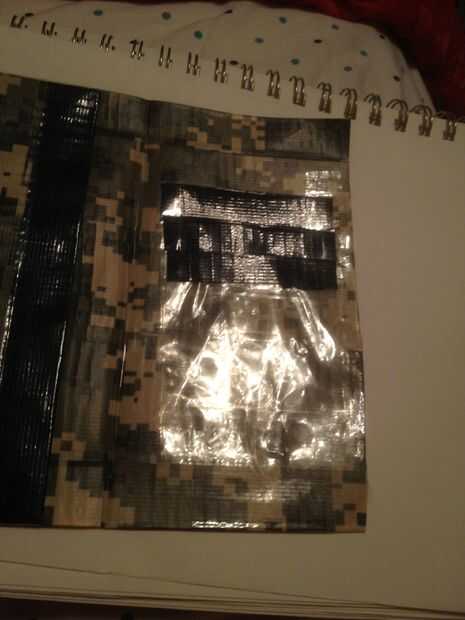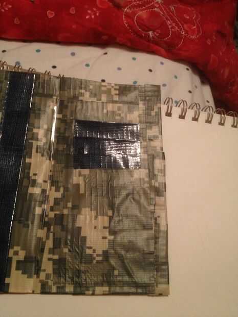Tiempo para que las ranuras de tarjeta de visita! Agregar la cinta alrededor del borde exterior del corte. Ahora añadir cinta de pato de camuflaje para ocultar la clara. Ahora añadir un parche de camuflaje para cubrir el último bit de la izquierda claro.