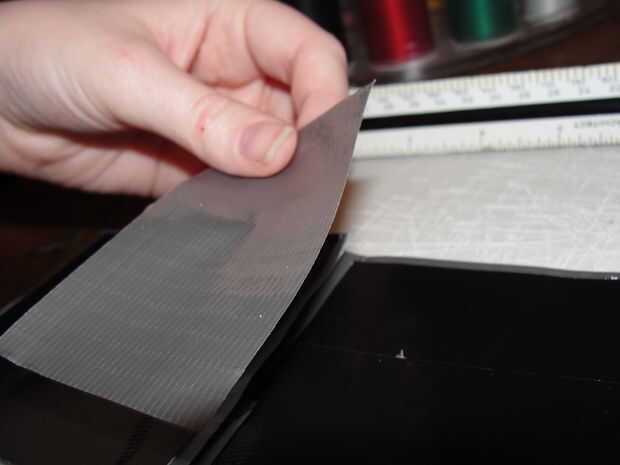 1. cinta de dos de las cuatro tiras de cinta gorila en el lado derecho de la tapa en la cartera.