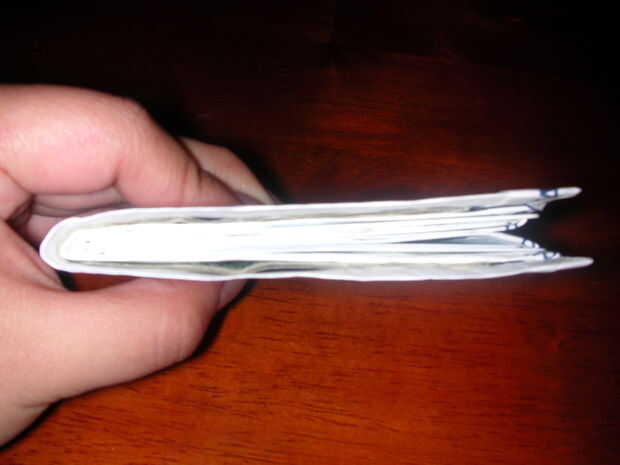 Esta cartera tenía dos bolsillos (el bolsillo de dinero y el bolsillo de tarjeta de crédito). Sin embargo, una vez que hayas hecho uno de ellos puede hacer algunas carteras de tarjeta compartimiento variación y hacer. Básicamente sólo repites pliegues 4 y 5 hasta que el número de bolsillos que desee.