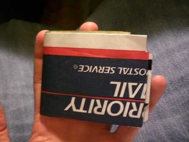 hacer una billetera de Tyvek doble fina y elegante con un sobre USPS Priority Mail, un protector de hoja y un par de tijeras. No hay otros materiales necesarios! No incluso pegamento.Y ahora te toca llevar alrededor de su propiedad (dinero) del gobie