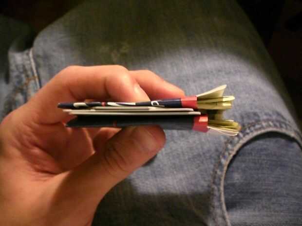no faltan de billeteras publicada aquí, pero cuando perdí mi billetera un par de años, ninguno de ellos lo hizo por mí, así que hice mi propio.  Usted necesitará algunos conocimientos de costura para éste, pero el resultado es un pro-ish mira que, de