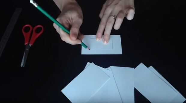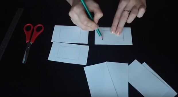 Paso 2: Utilice una pieza del rectángulo pequeño de cartulina como una plantilla para dibujar un marco en el centro