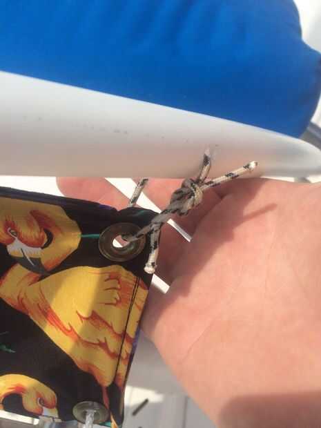 Utilice nudos cuadrado (derecha sobre izquierda y bajo, izquierda sobre derecha y bajo) para que pueda romperlos fácilmente y reutilizar cuando desee tomar abajo para lavar o para evitar que destruyó en el sol, o, en caso de huracán.