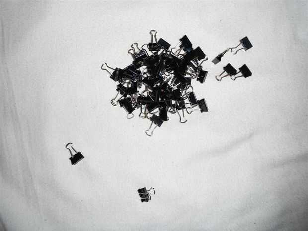 La bola del clip binder se hace con el 2 brazo metal carpeta sujetapapeles. Los clips de tamaño funcionará como son lo mismo. Recomiendo un clip mediano ya que son los más fáciles de trabajar con y son generalmente más abundantes. Hacer su camino a su suministro de habitación, armario o secretarios de despacho para obtener los clips. Si no desea "pedir prestado" los clips de trabajo, usted puede encontrar en cualquier tienda de suministros de oficina por un par de dólares.