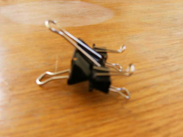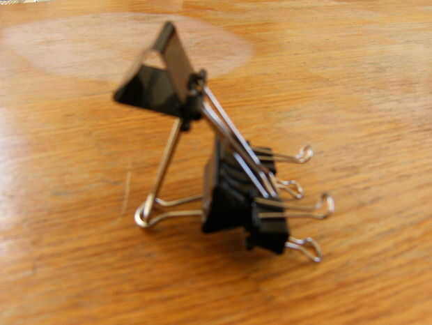 Añadir los clips binder pequeño a uno de los grandes, para ello sólo toman el pequeño y abren y fijarlo con la abrazadera a la grande. Hacer lo mismo con el otro (pequeño).