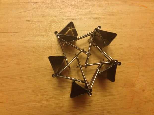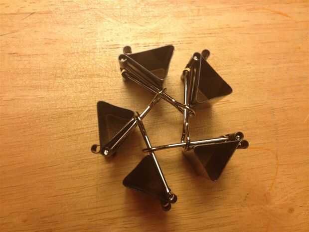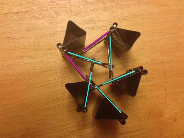 Coloque los clips de tal forma que las aberturas están apuntando contra reloj sabio y el brazo "azul" se une al interior del clip. Envuelva un brazo a través de un brazo de la estrella azul y conecte a los lazos externos de un clip (rosado sobre azul).