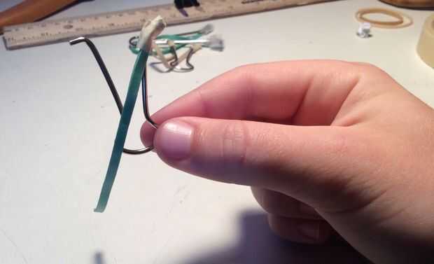 4. Envuelva la cinta alrededor de un lado con la banda elástica y las puntas de la clavija y mantener el embalaje hasta que los dos están juntos