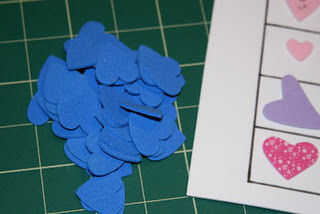 Para encubrimientos, usamos espuma azul corazones. También puede utilizar caramelos o besos o monedas o cualquier otro artículo.