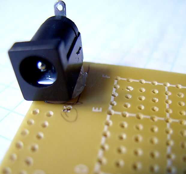 Para comenzar con, montamos al conector coaxial de 2,1 mm en una esquina lejos de
