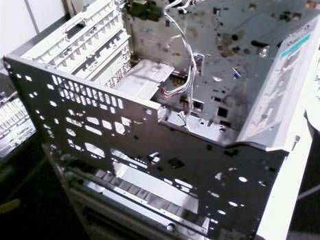 7. eliminar la electrónica. Mayoría de los cables con enchufes y deslicen las juntas o tienen tornillos que la sujetan al chasis. No fuerce nada. Si no desliza hacia fuera, entonces te has perdido un tornillo o un clip en algún lugar.
