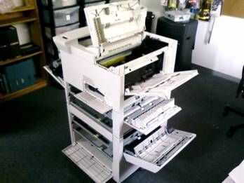 4. Retire la unidad de impresión dúplex (o cualquier cosa que salga solo). El dúplex tiene un embrague eléctrico interesante - caja DTID.