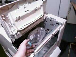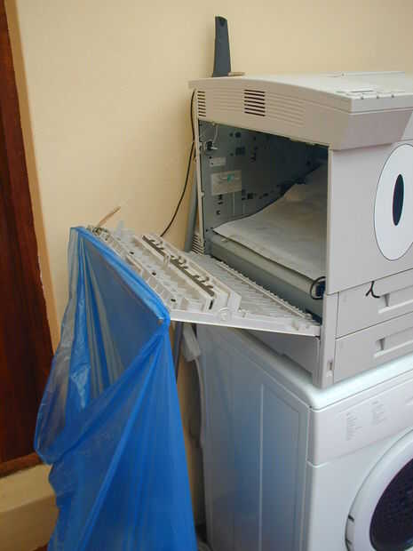 Pero esto no es super cool todo! ¿Seguramente la impresora merece una segunda vida como una pieza de tecnología útil? Tal vez podemos hacer una automática máquina de reciclaje!