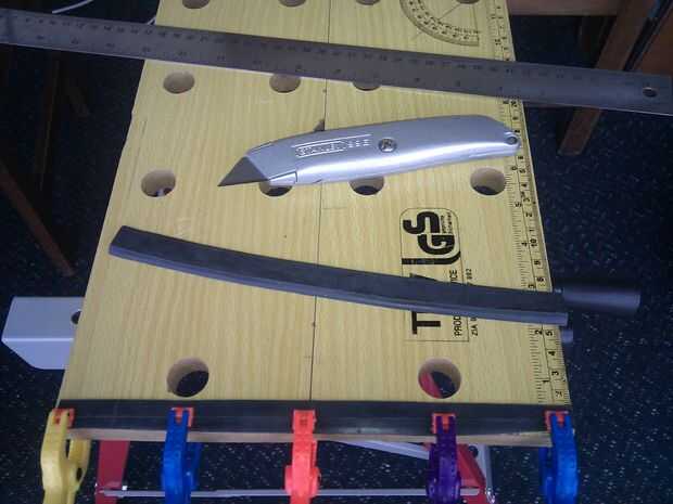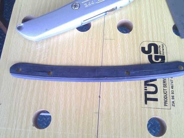 Cortar una tira rectangular de la goma. Un ancho de 20mm trabajado para mí--dos veces la profundidad de la PAC. Una longitud de 180mm trabajado para mí. Puede que necesite experimentar si sus binos son más grandes o más pequeños que los míos.