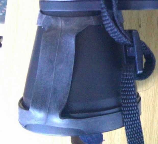 Estirar cuidadosamente la goma sobre el extremo de los prismáticos y la tapa del extremo.