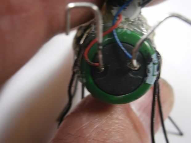 Envuelva firmemente uno motor sin cables alrededor de uno de los conductores (piernas) de condensador estupendo y envuelva el otro cable pelado del motor al otro cable del condensador estupendo. Asegúrese de que los dos cables pelados no toquen. Puede que necesite más aislamiento del extremo del alambre. Si usted quiere, puede soldar estos cables.