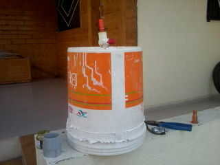 tomé un bote de pintura de 20 lts para la fabricación de un tanque de gas de titular. Este tanque contiene el gas producido. El tanque se volcó y fijo con una válvula utilizada para efectos de plomería.