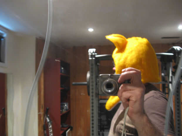 Finalmente los lazos de alambre más grandes de la parte inferior de las orejas son doblada recompensa. Antes de que sujetan los lazos en la costura superior de la chimenea. Este paso ha demostrado no ser necesario. Los bucles simples doblan abajo del perfil de la cabeza y gravedad los mantiene en su lugar. Las orejas a flop un poco más pero todavía permanecen en posición verticales independientemente de la inclinación de cabeza y posición. El tenía voluntad de no caer fuera de mi cabeza en la posición propensa.