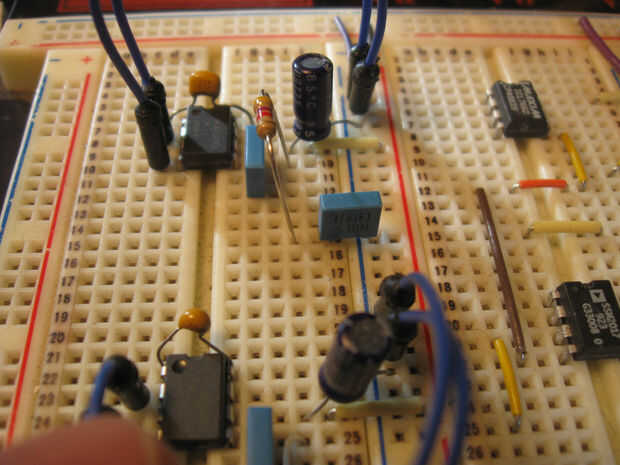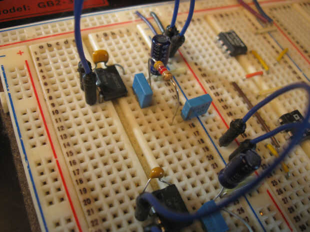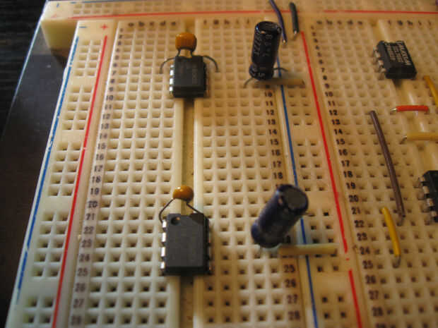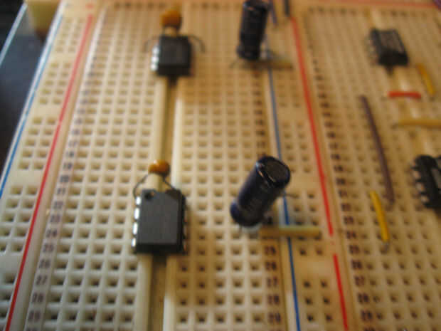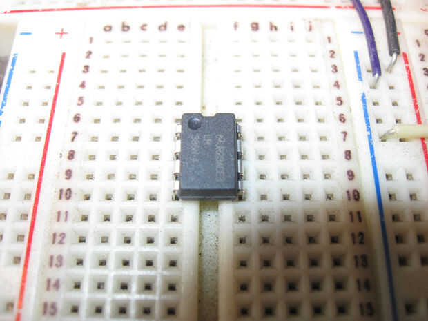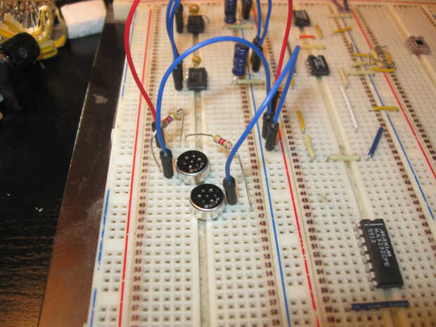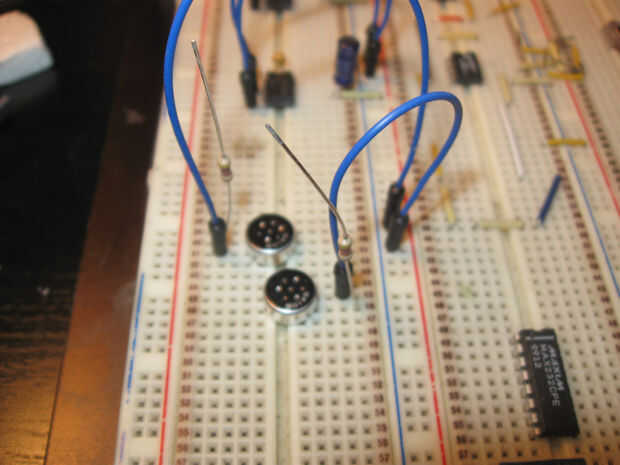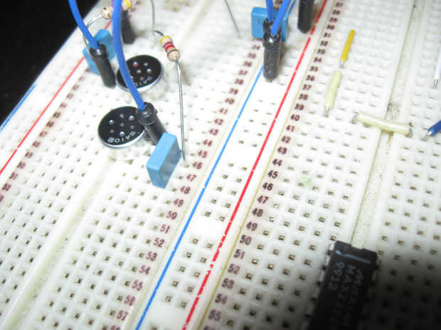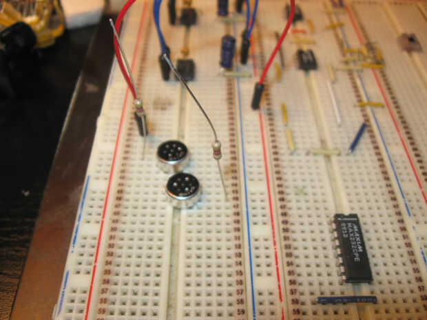 Instale una tapa de 10uF para pin 5 y deje abierta una pierna. Conéctelo a una toma de auriculares, utilice la Convención estándar para los canales izquierdo y hacer.