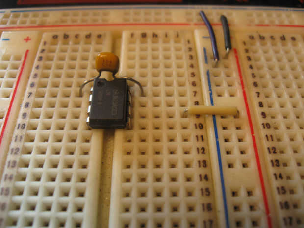 Conecte el Pin 1 al Pin 8 a través de un condensador de 10uF cerámico, esto reducirá el ruido de chip...