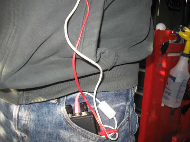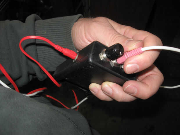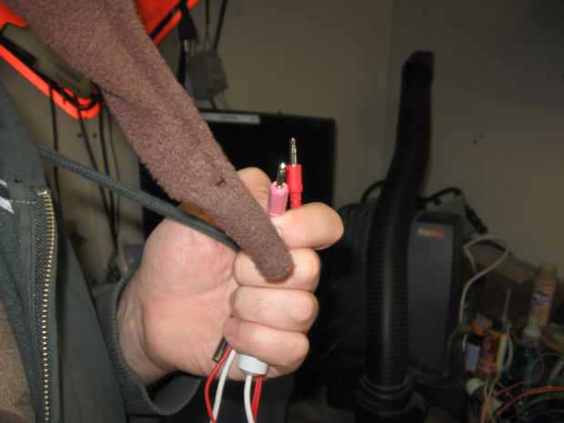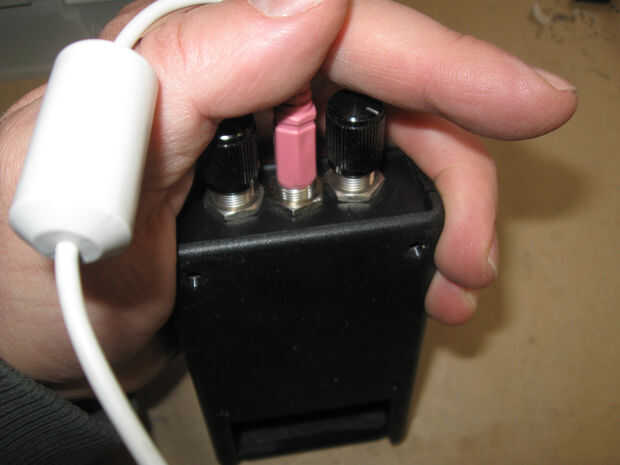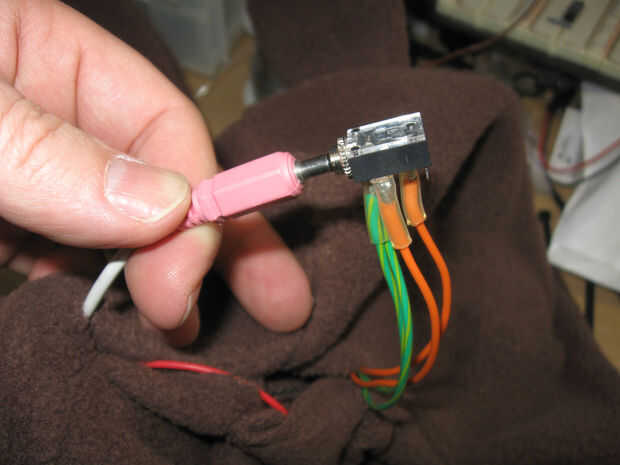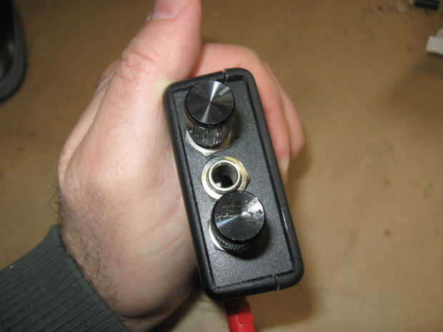 En este caso el cable blanco/rosa proviene de los micrófonos y debe pasar por el circuito que está dentro de la caja negra como se ha discutido. El cable rojo va directamente al circuito de auriculares. El volumen del micrófono es controlado por las macetas audio 2 que están a ambos lados de la entrada de mic.