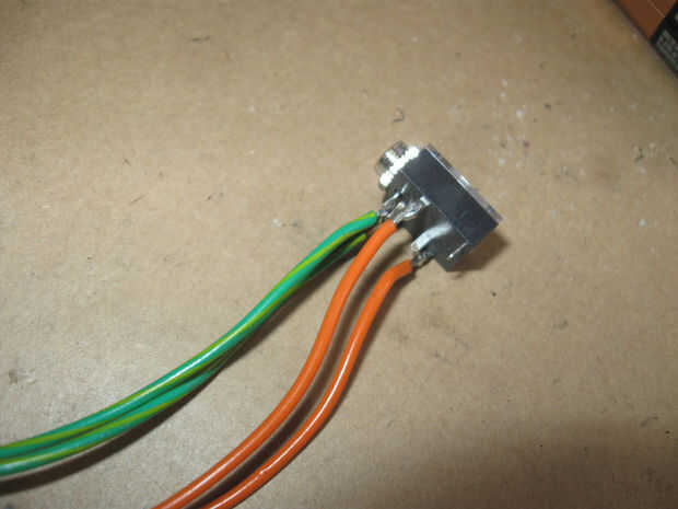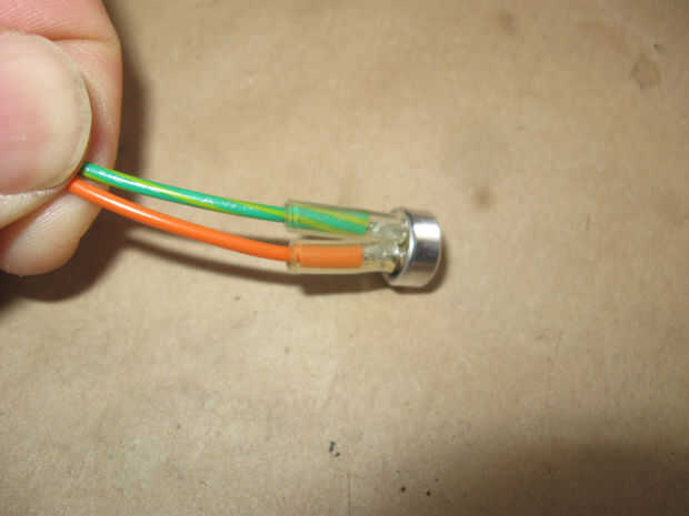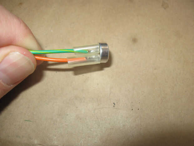 Otra vez los circuitos están contenidos en el dispositivo de la caja. Simplemente conecté naranja a positivo y verde a tierra como se muestra. Tenga cuidado a izquierda y derecha para la orientación adecuada.