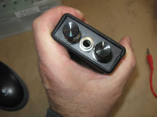 El circuito más compacto se encuentra en un caso de serie 1500 de Hammond que tiene un compartimiento de la batería de 9V. Fácilmente puedo poner éste en mi bolsillo con ningún roce.