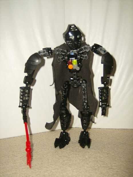 Hola este es mi bionicle Darth Vader. Utiliza un nuevo diseño de brazo que es completamente diferente de los otros bionicles que conozco. Utiliza Vezon, señor Vladek, Reidahk, Onua y algunas piezas al azar.