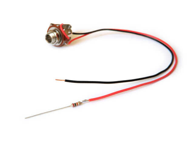 Conecte un resistor de 20K al extremo del cable largo rojo pegado al conector de sonido.