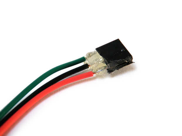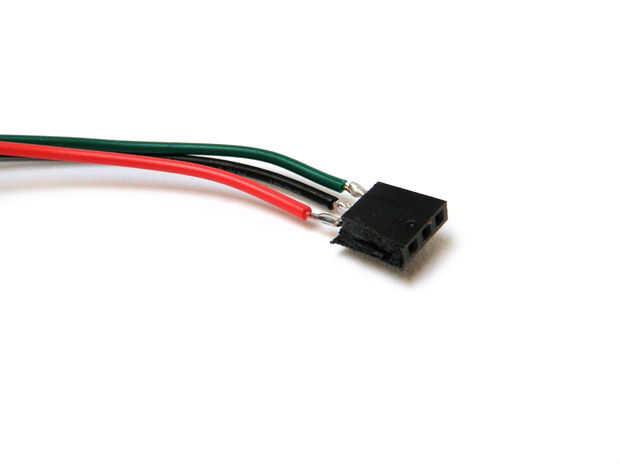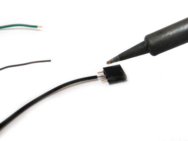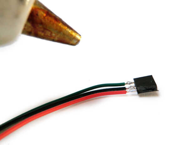 Soldar un cable rojo, verde y negro al conector de 3 pines.