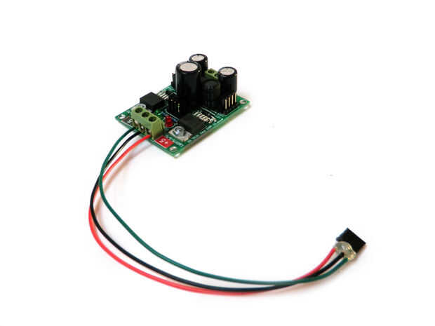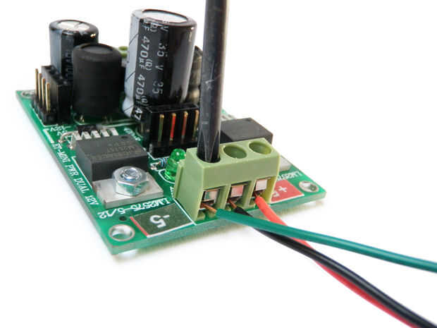 Conecte los tres cables de la toma en los +/-5V fuente de alimentación tal que verde va a - 5V negro va a tierra y rojo va a + 5V.