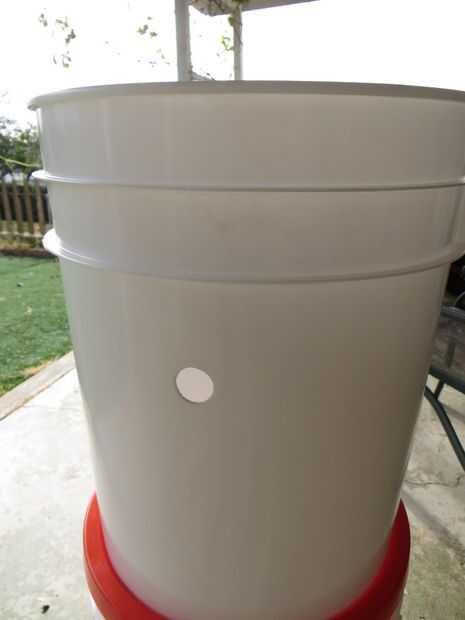 1. Taladro un referencias"diámetro agujero usando una broca o un agujero vio 6" hacia abajo desde la parte superior del cubo superior del filtro bioarena. Este es el agujero que el tubo de salida de agua limpia pasar de dentro de su filtro al exterior así que usted puede reunir.