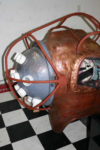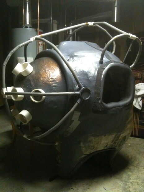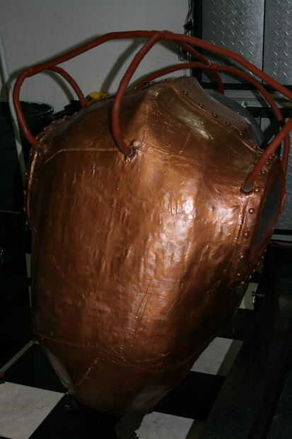 La pintura es martillada de cobre. Le da ese aspecto de traje de buceo antiguo