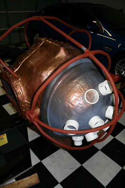 Una vez yo estaba contento con el ajuste. Comencé en la jaula y puertos para la cúpula. La jaula fue conducto eléctrico calienta y doblado a la forma. Los puertos en la cúpula son piezas de fontanería de PVC. Eso es como ver hacia fuera a caminar recto.