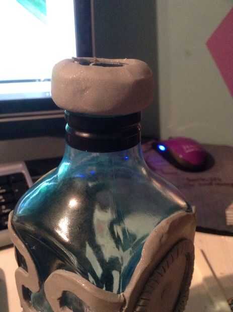 Una vez más, estirar una hoja de arcilla y envuélvalo alrededor del cuello de la botella donde se encuentra con el pico. Redondear los bordes para que sea más suave.