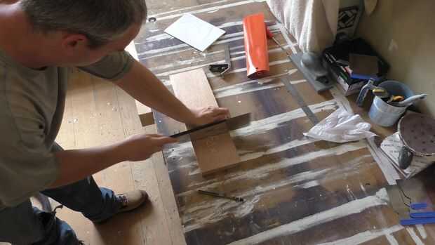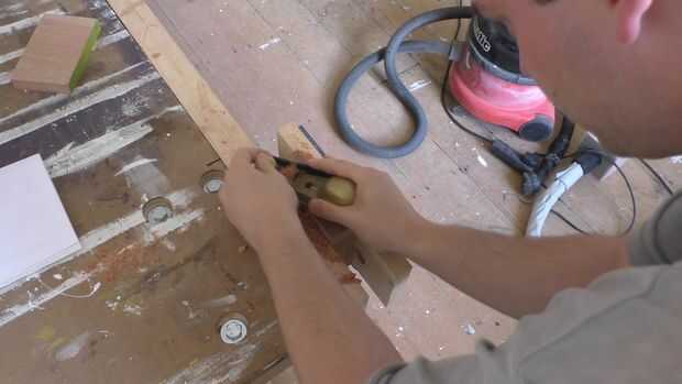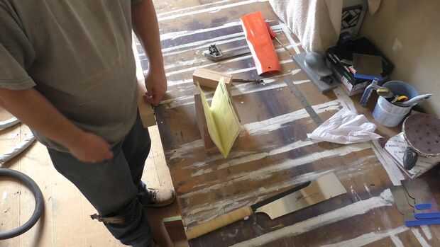 Limpie los bordes primero con un plano y luego con una espátula de gabinete. No te preocupes demasiado romper el borde mientras la planificación como se corta la mayor parte de a para conseguir la forma final.