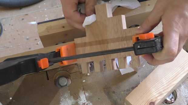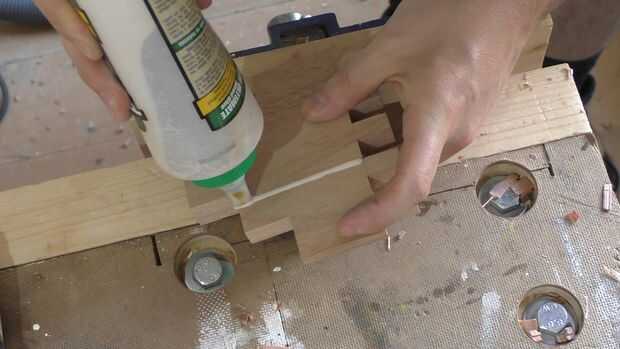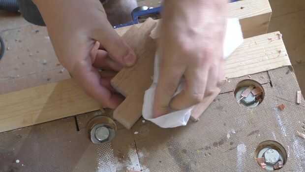 Sólo aquí aunque te ves error número dos. En lugar de esperar el apretón hacia fuera para secar limpiar con un poco de tejido. Planeaba la pieza de la arena para que este no sería un problema pero el pegamento que tiene en la veta fue aspirado profundamente dentro de la pieza y afectado el acabado final.