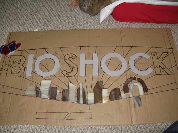 se trataba de una forma fácil rápida para hacer papel maché. Usted puede hacerlo que quieras que yo hice esto y también logotipo de Bioshock 2. todo lo que necesitas es:cartónnavaja o cuchillo pequeñocinta de pintor verdeperiódicoagua y harina para h