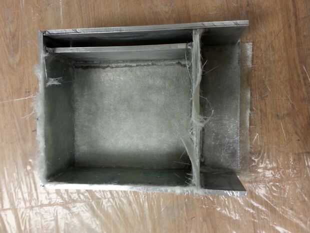 8. Espere 30 minutos y luego la rebanada de la fibra de vidrio sobrante que se pega para arriba de la caja con el cuchillo. Será más fácil en esta fase de curación.
