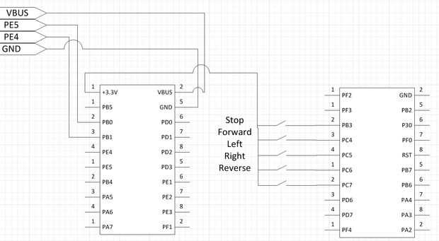 - Conecte el cable de PE5 del cable USB al PB0