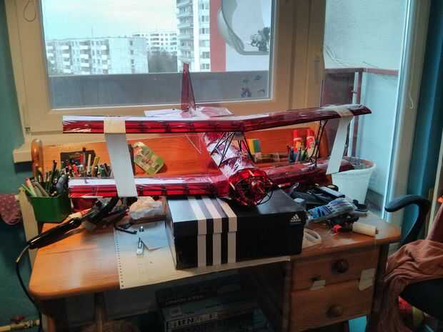 He utilizado el papel de planchado Oracover. Parte superior es de color rojo transparente y el fondo es negro puro.