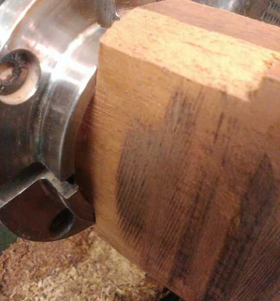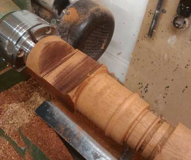 Con el remontaje de secciones quitar la pieza en el torno, asegúrese de que el ahora corta espiga se lleva a cabo correctamente en las mordazas del portabrocas, plantear la acción de la cola para un apoyo extra y gire la sección restante del cuerpo.
