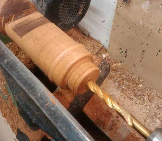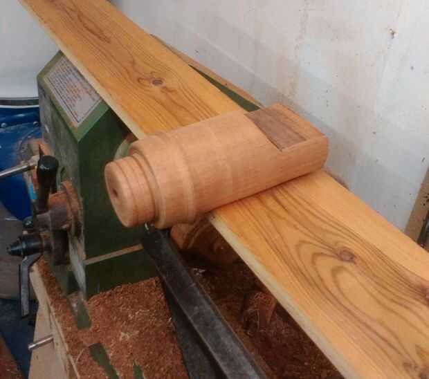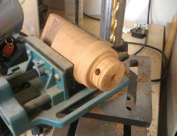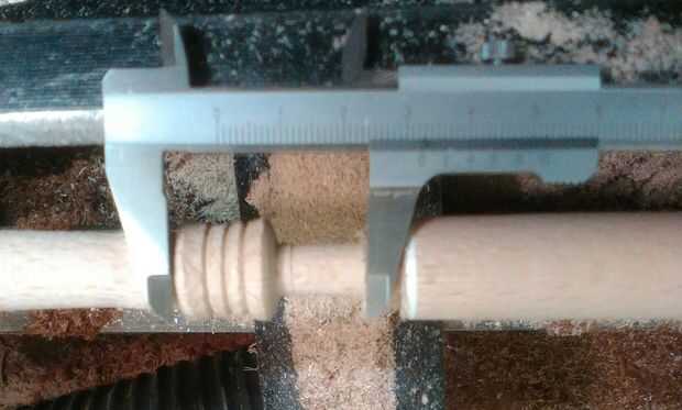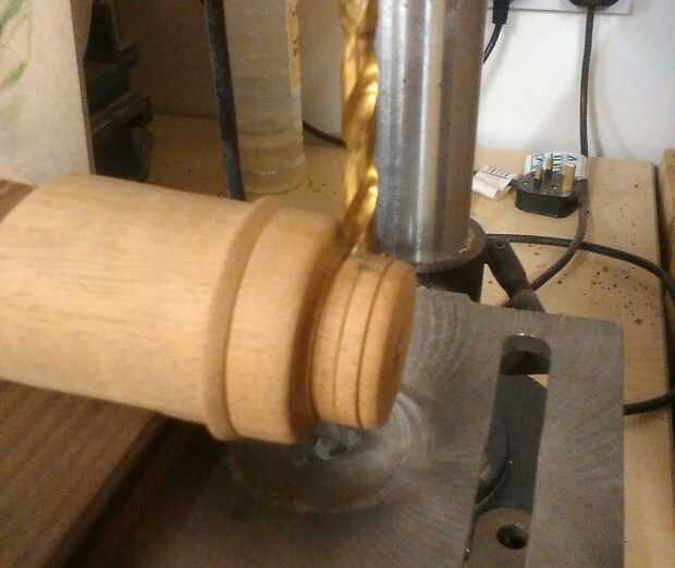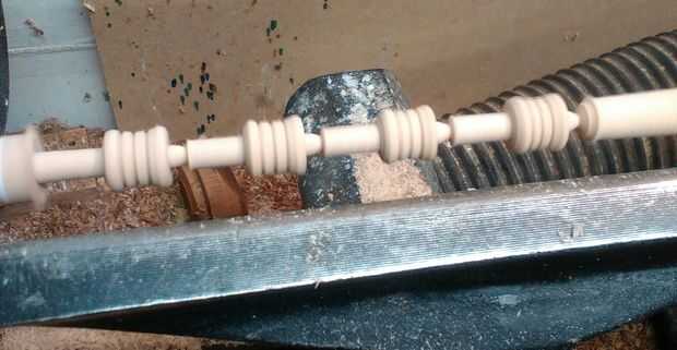 Para hacer los cilindros el material de elección era la playa de un viejo camastro. Una vez que el cilindro primero fue medidas donde toman y la forma se repitió a lo largo de la madera para obtener mayor cantidad posible de la acción. (tenga en cuenta que la parte inferior del cilindro deben ser del mismo diámetro que los agujeros de 8 mm perforados alrededor de la manzana ya que este es de donde encajan.