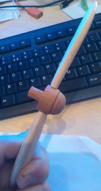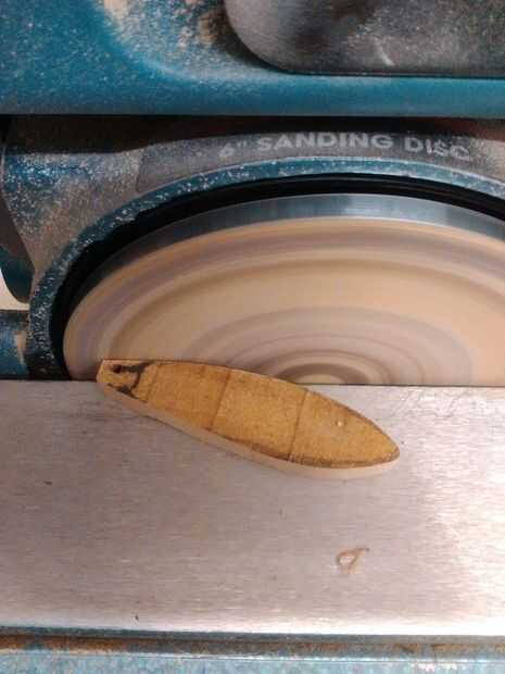 La población de las láminas era demasiado gruesa así que corte una sección delgada sobre la cual la forma de una lámina áspera fue bosquejada. Luego cortar y la cuchilla en forma de una lijadora, la última parte de las hojas era cortar una espiga de 5 mm cada uno a mano para adjuntarlos a la ruleta.