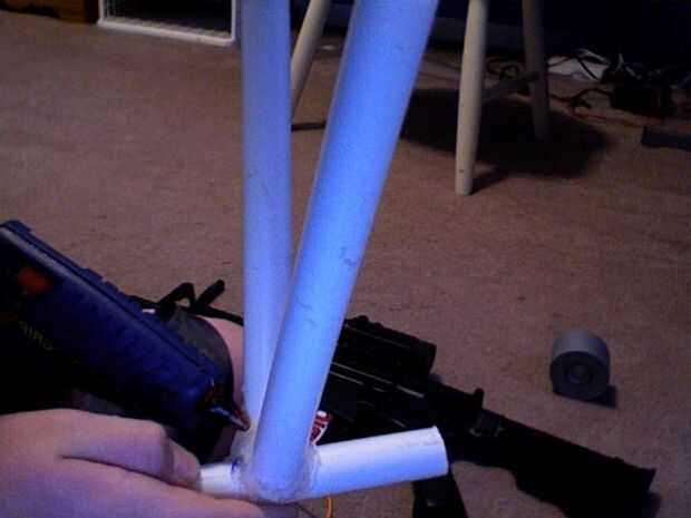 Ahora toma las 2 piezas de PVC tamaño mismo y pegar a la pieza de 5 pulg de PVC!'