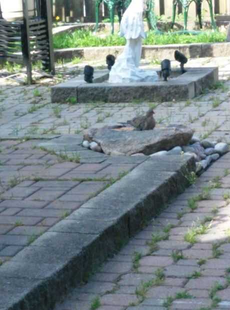 Llenar el cubo, agregando lentamente agua en la fuente usando una manguera o jarro. Una vez llena, la fuente debe rellenar cada uno o dos días, depende de la cantidad de aves visitantes tomar un baño.