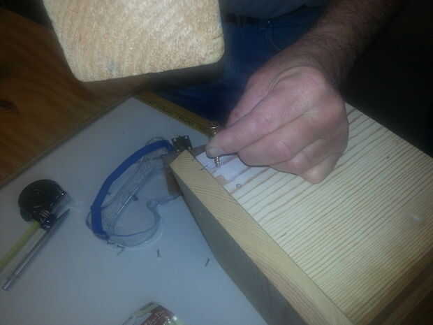 La parte superior del poste de montaje debe cortarse en un ángulo de 10 grados para que coincida con el ángulo de la placa base. Acople de forma segura con 2 a 4 tornillos para madera.